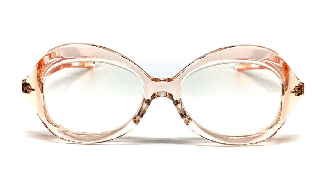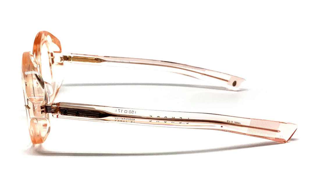 The Lenore is a unique, soft angled shape w/ intensive volume cutout featuring a new custom floating hinge system allowing the temples to freely adjust and insure a perfect fit.